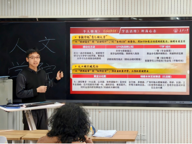 刘天和学长开场表示以平辈视角分享,鼓励同学们随时互动,营造轻松交流氛围。学长结合自身经历,强调大二是大学阶段的“黄金分化期”,建议同学们,通过“T字型成长”模型,纵向深耕专业课程,横向拓展学生工作与社会实践。此外,学长还强调保持坦荡心态的重要性,并提出三点建议:不要过度在意他人评价;保持高能量状态;通过社交活动调整状态。
