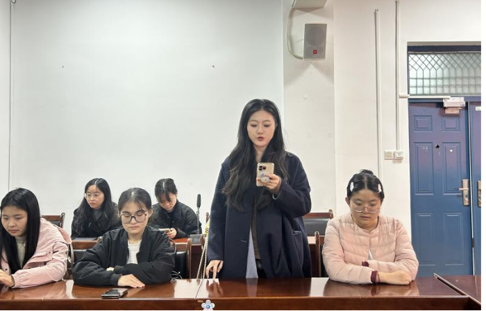在交流发言环节,两支部党员围绕“学风建设与科研精神”“学科发展与青年使命”等主题展开深入研讨。第一党支部党员董芳棋同志结合自身科研经历,谈到过硬学风是学术共同体的基石,研究生党员要以更高标准要求自己,在学术写作、科研诚信和时间管理中做到言行一致,积极营造求真务实的研究氛围。第二党支部党员梅文静同志从人文学科发展的角度指出,青年党员应主动把握学科交叉与数字人文等前沿趋势,将党的创新理论与学科研究方向相结合,在学术探究中彰显社会关怀与人文精神。