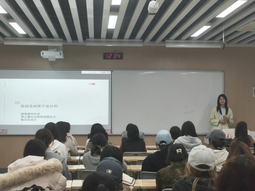为帮助同学们更好地规划大学学习与未来发展,10月29日,长安大学人文学院2025级新闻传播学大类一班与二班在WX2308教室联合举办了主题为“研途有光:保研经验分享会”的联合班会活动。