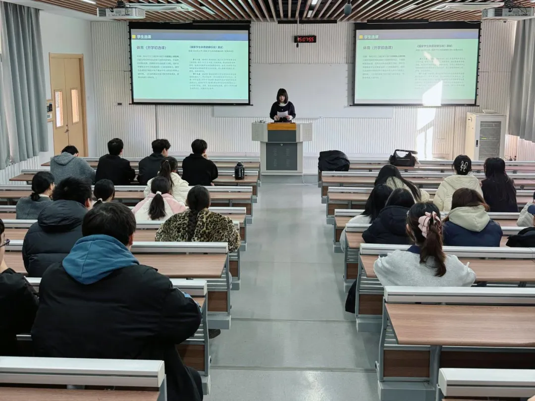 为进一步强化学生学业规划意识,严明考风考纪,筑牢校园安全防线,1月6日,人文学院2023110201、2023110202班于北校区WX3102召开“明学业要求,守考风底线,筑安全防线”主题班会。本次班会由学院专业建设及教学主管、思政班主任贺丹主持,全体同学参会。
