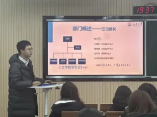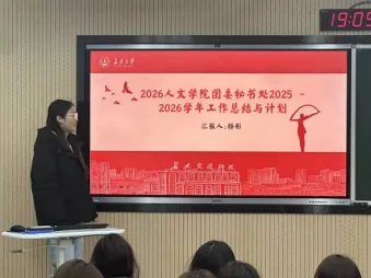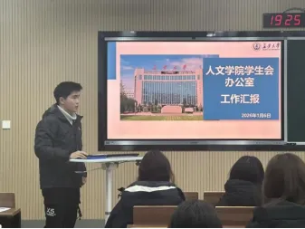 为全面总结学院各团学组织本学期工作成果,加强组织建设,促进交流互鉴,人文学院于2026年1月9日晚7点,开展2025年秋季学期团学组织年终工作总结会议,学院团委副书记张世诚出席会议现场。