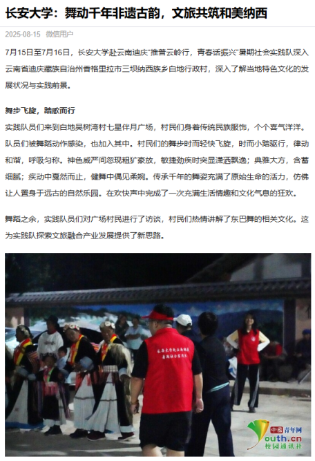 中国青年网:《长安大学:舞动千年非遗古韵,文旅共筑和美纳西》