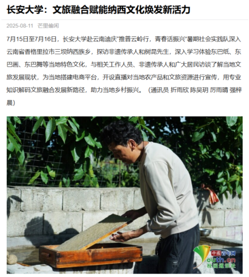 中国青年网:《长安大学:文旅融合赋能纳西文化焕发新活力》