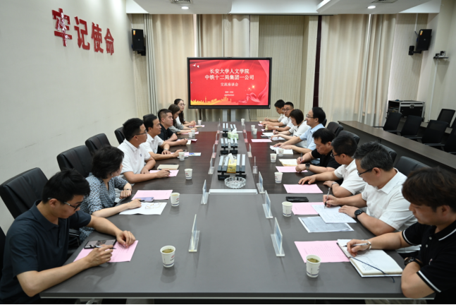 6月6日下午,长安大学人文学院院长杜智民、学办主任王飞、公共管理系主任王灿友、法学系主任刘萍、新闻传播系主任崔慎之、中文系主任陈熙熙、辅导员李贤等一行7人赴中铁十二局集团一公司开展访企拓岗、合作交流等调研工作。中铁十二局集团第一工程有限公司党委副书记、工会主席米俊峰,工会副主席孟祥军,工会副主席、党委组织部部长董青,总经理助理、人力资源部经理王淼章,我院2006届法学校友、法律合规部经理雷乾军,我校2009届工程机械学院校友、物资管理部经理周俊等出席座谈会。
