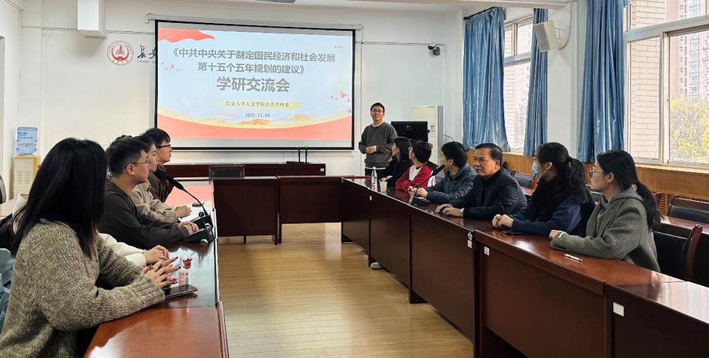 为深入贯彻党的二十大及二十届四中全会精神,深刻把握中国式现代化对公共治理提出的新要求,由“行为科学与公共政策”陕西省高等学校重点实验室和人文学院公共管理系于2025年12月3日共同组织召开专题学研交流会,专题学习《中共中央关于制定国民经济和社会发展第十五个五年规划的建议》(以下简称《建议》)。会议围绕《建议》的顶层设计和战略谋划,结合公共管理学科前沿与实践,开展了深入的学术交流。本次学研交流会由共管系系主任王灿友主持。