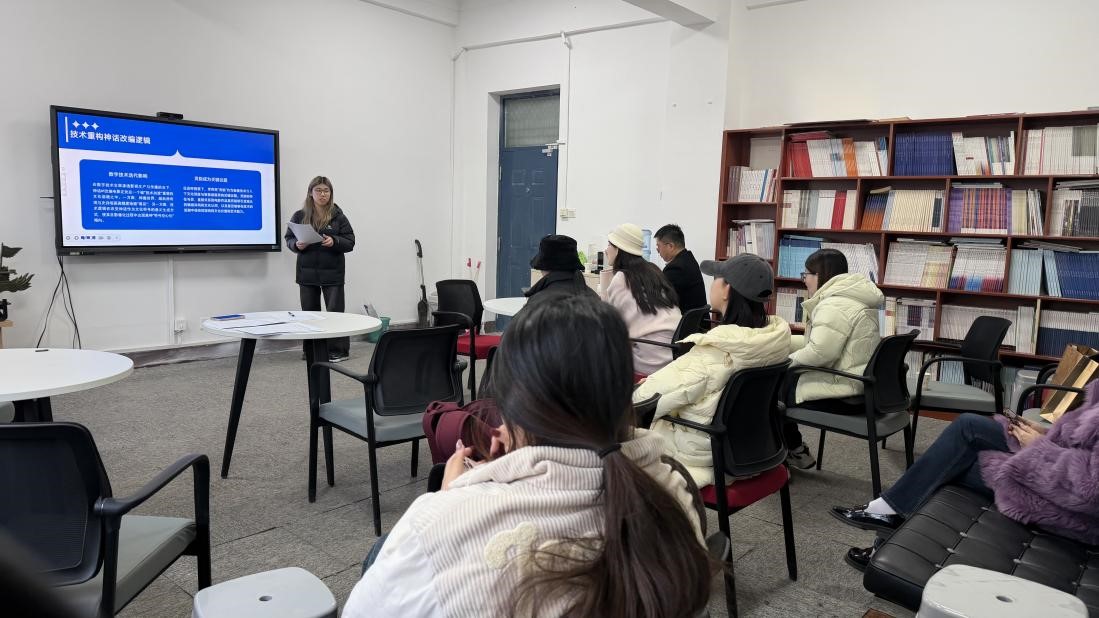 2025年12月24日下午,人文学院研究生“博学”学术讲座第168期在学院434学术工作坊顺利举办。本期“博学”讲座由2024级戏剧与影视专业的丁安宁担任主讲人,讲座主题为“技术赋能神话IP改编电影的灵韵消减与重构研究”,研究生导师崔艳天及相关同学一同参与了此次讲座。