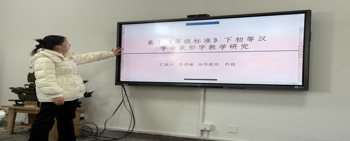2025年12月25日下午,人文学院研究生“博学”学术讲座第170期于学院434学术工作坊顺利举办。本期“博学”讲座由2023级国际中文教育专业的李晨曦担任主讲人,讲座主题为“基于《国际中文教育中文水平等级标准》下初等汉字中象形字教学研究”,研究生导师乔艳及相关同学一同参与了此次讲座。