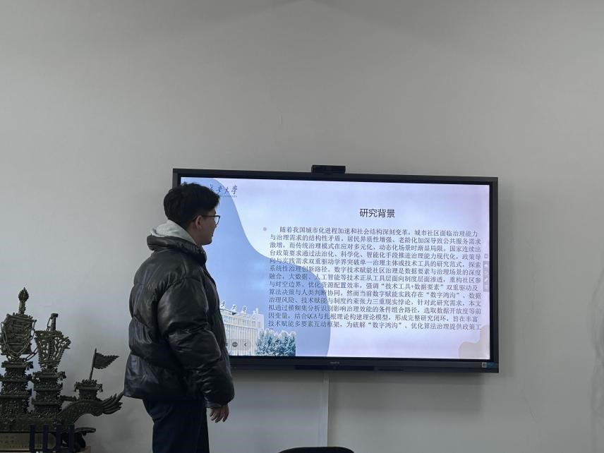 2025年1月6日下午,人文学院研究生“博学”学术讲座第176期于学院434学术工作坊顺利举办。本期“博学”讲座由2023级公共管理专业的刘世浩担任主讲人,讲座主题为“数字技术赋能社区治理的影响因素和实现路径”,研究生导师杜智民及相关同学一同参与了此次讲座。